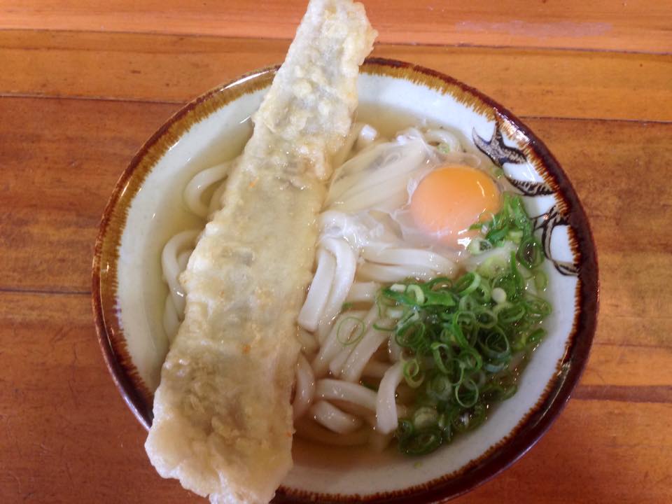 うどん県の高松にて。穴子天ぷら月見うどんをズルっといただく。う~む。シンプルに旨し。