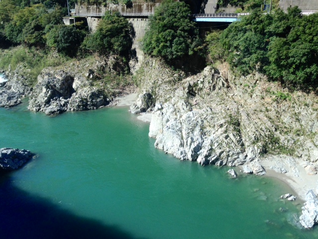 wikiによれば、小歩危(こぼけ)は、吉野川中流域に位置する渓谷(先行谷)。大歩危(おおぼけ)は、吉野川中流域に位置する渓谷(先行谷)。あれ?同じ説明だな。