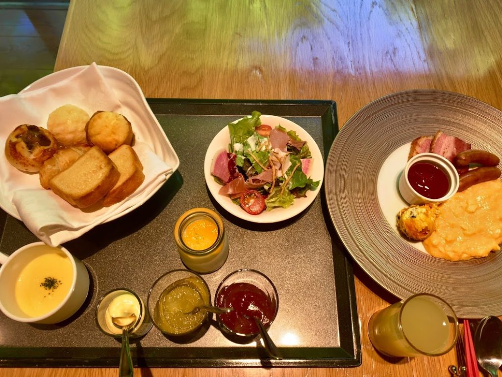 朝餉。夕食と同じ青森りんごキッチンで。
