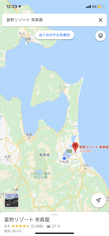 これから向かう、星野リゾート青森屋の位置関係を。三沢空港の近くですね。