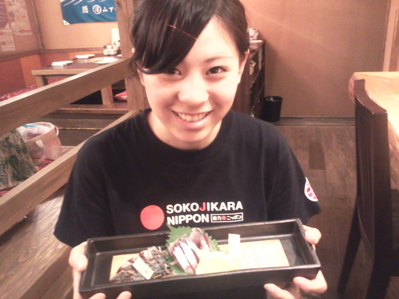 おいしい刺身を持ってきてくれた、店員さん。鈴木亜美さんを、8頭身にしたようなイメージ。熊本の美女ポテンシャル、半端じゃ、なかばい~(笑)