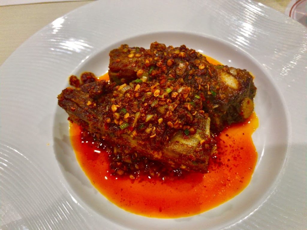 4品目で一気に四川ワールドへ。スペアリブのスパイシー和えと。辛い・旨い・たまらない…スペアリブのソースは、いわゆる「食べるラー油」の超高品質版のイメージ。うまみの塊。う~む。ご飯が欲しくなってきたな。