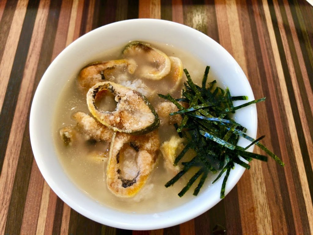 カラッと揚げた鮎がいくつも入ってる。そのあゆが出汁で柔らかくなって、あゆのうまみが雑炊にほのかに溶け込んで、なんともたまらない旨さだった。何杯でもおかわりできそう。さすがに長良川、鵜飼いの船場のきわきわに位置しているホテルだけの事はあるな。