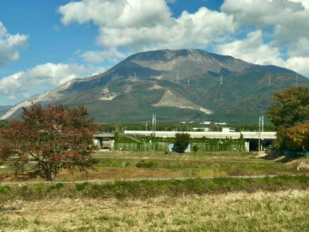 特急「白鷺」の車窓から見えた伊吹山。君が代の「さざれ石」が取れるのはこの山らしいが・・山頂が丸い独特のかたち。きれいだよな。