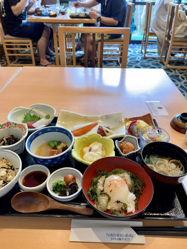 朝食。ホテルの中の和食レストラン「佐和」。いろいろな小鉢がたくさん。海ブドウの温玉丼など、沖縄ならではのおかずもあって美味しだった。新コロ禍、よくこれほど用意してくれたな。素直に嬉しい・・・
