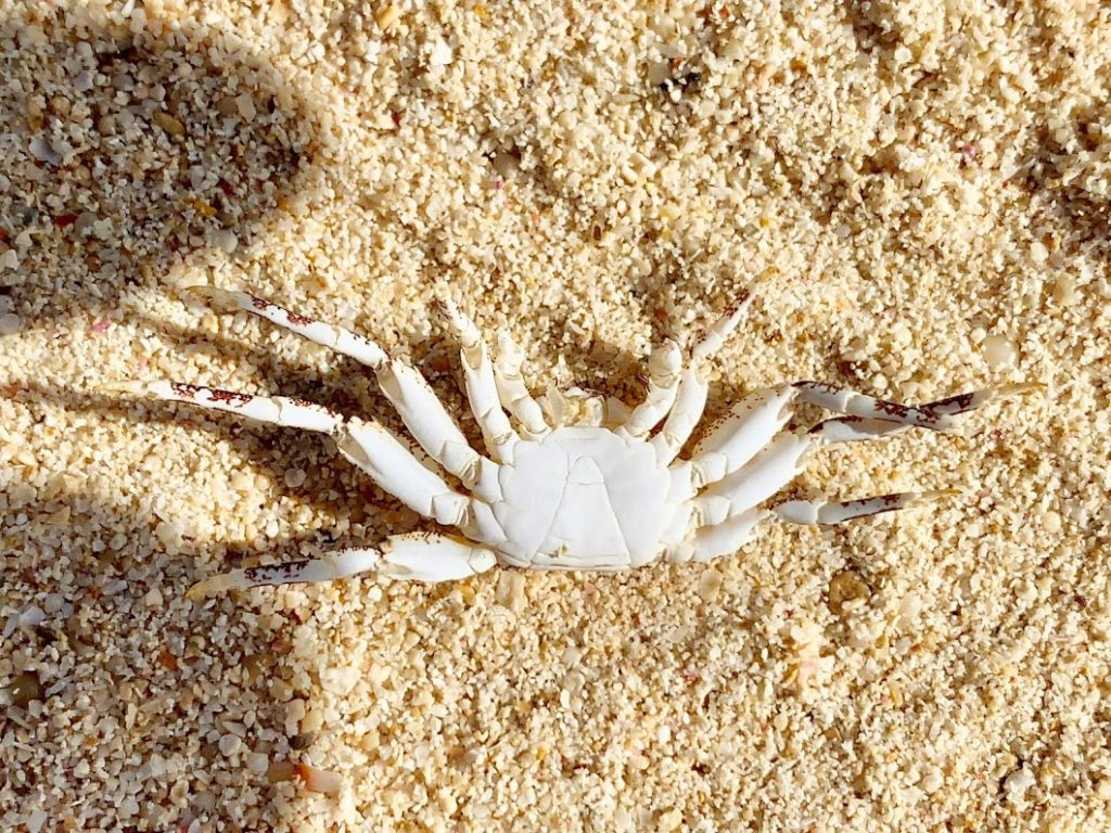 浜を散策していたら見つけた、小さなカニのなきがらが。綺麗なシルエットだよな。