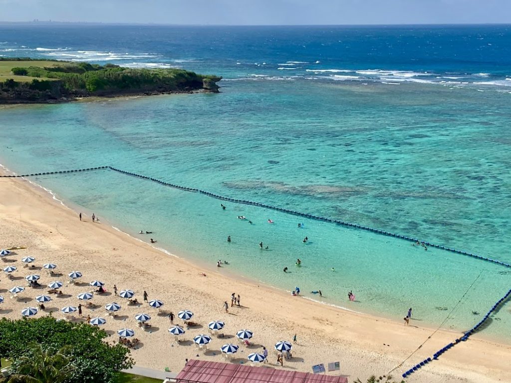 沖縄の二日目。徐々に晴れてきた!いい感じになってきたな。ホテル日航アリビラの浜、二ライビーチを。