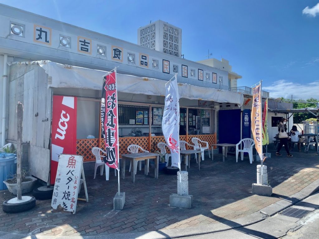 道を・・・ここは県道238号なんだな。いったん戻って浜比嘉大橋を通り越して活連浜へ。すると海沿いに、なんとも沖縄らしい食堂が。