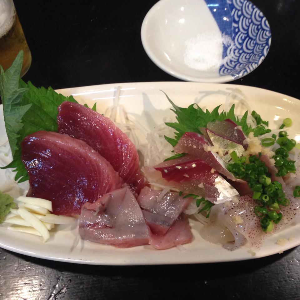 お造り。いろんな魚を少しずつ盛ってくれた。鰹、鰹のトロ部分、土佐清水で揚がったサバ、メンイカ、カマス、アジと。それぞれに、旨しだったな。