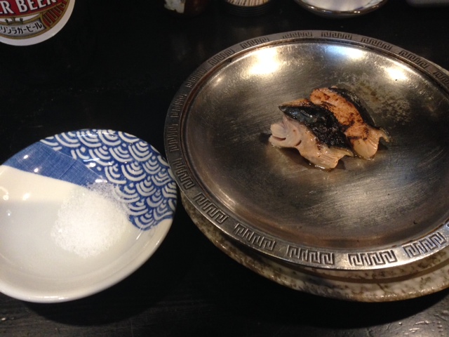 鰹の炙り塩タタキ。バーナーで火を入れるので、炙ったら30秒以内に、粗塩につけ召し上がれと。そうか・・・確かに、旨しだった。