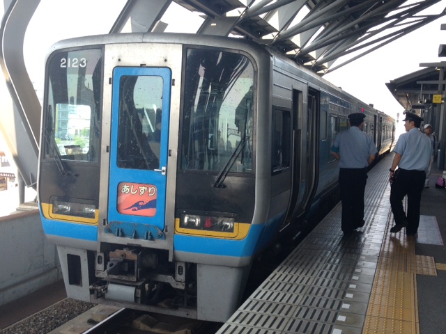 高知駅。意外と近代的な造り。東京や大阪の人にはわかりづらいと思うが、四国の県庁所在地駅は4県とも、街のはずれにある。高知も然り。さてこれから中村、四万十川へ。う~む。人生において、初四万十。ここは、なかなか行けるもんじゃない。遠いからな。東京から大阪からはもちろん、高知からでさえも。しかし、その遠さに反比例するが如く、旅情はいやがうえにも高まる。