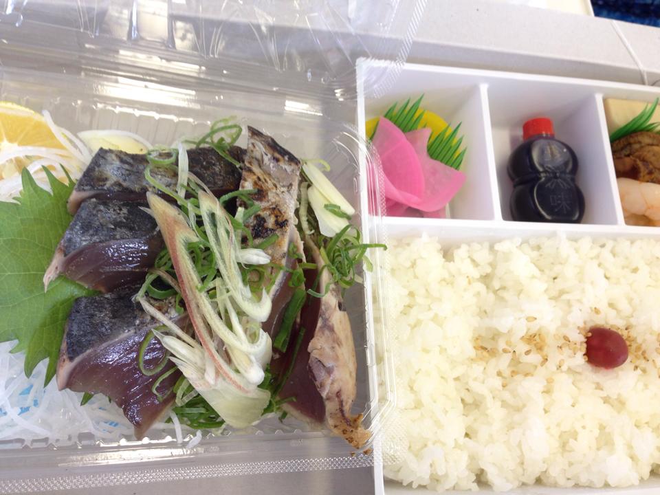 11時6分!!やっと高知に着いた!駅弁、昼餉のカツオのたたき弁当を大急ぎでGet!生のカツオのたたきがそのまま駅弁になっているところが、高知らしいな。関東では刺身弁当なんて、ないもんな。