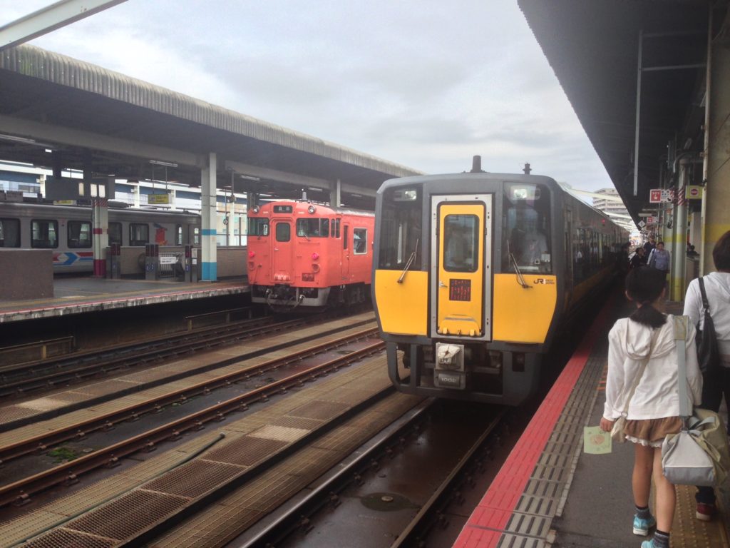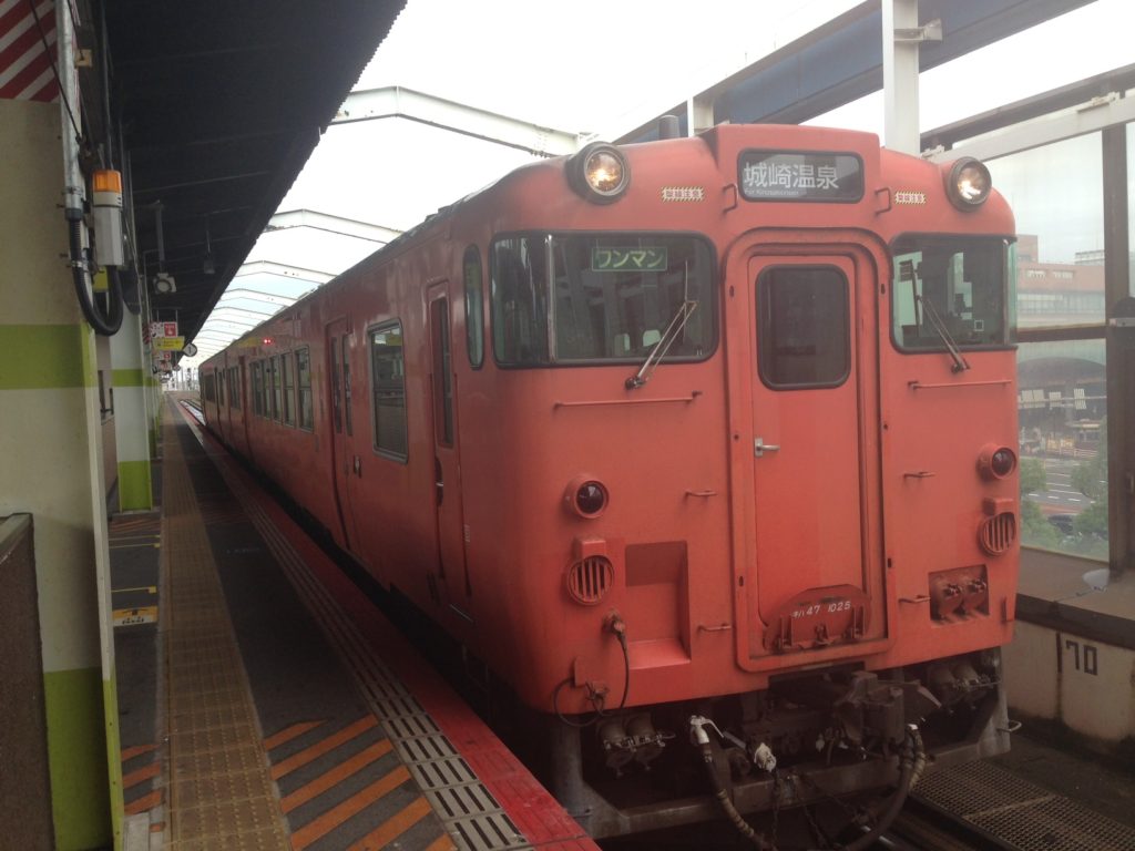 倉吉での仕事が終了。これから餘部鉄橋に向かうが。その時乗ったら鈍行の気動車。山陰本線特有の紅しょうが色。なんともいえないなぁ。一説には、山陰の紅ズワイガニの色に準じているというが。。本当か?