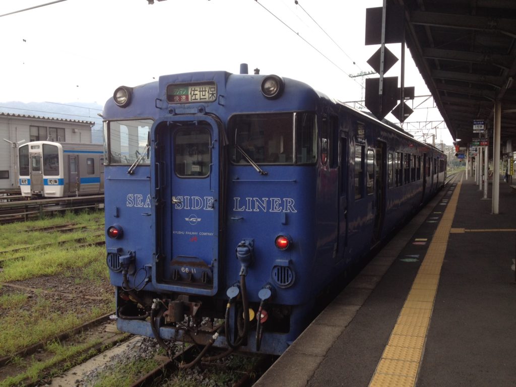 シーサイドライナー佐世保行き。これで佐世保の手前、ハウステンボスに向かう。真っ青の気動車ですな。長崎駅に着くといつもこいつがお出迎えしてくれる、そんなイメージ。