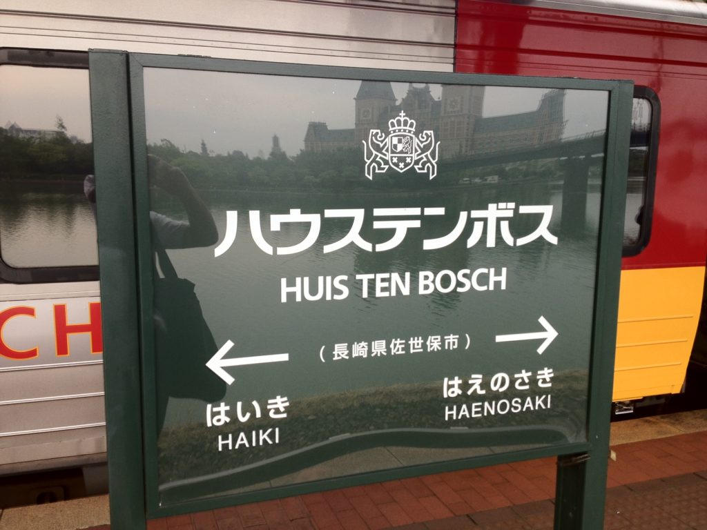 大村線ハウステンボス駅の表示。デザインをいろいろと考えてるな。