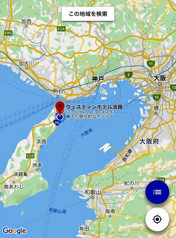 ホテルの位置関係を。本州からなら、明石海峡大橋を渡ったらすぐなんだな。