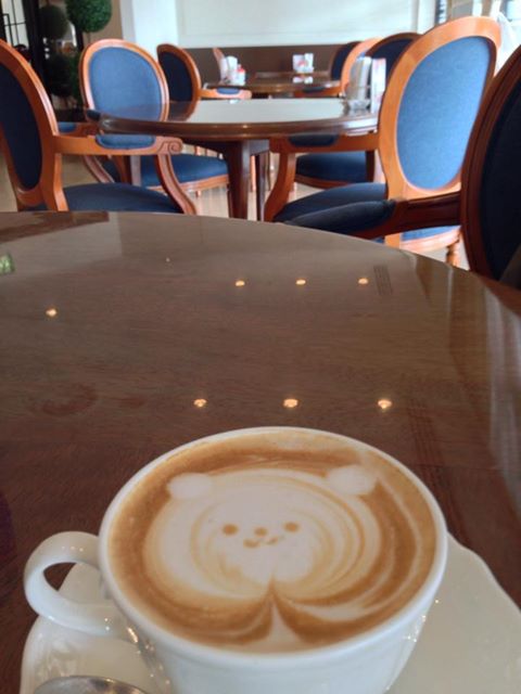 カプチーノを頼んでみたら、こんな可愛らしいデザインにこしらえてくれた。男性でも結構、こういうの、嬉しいもんだな…