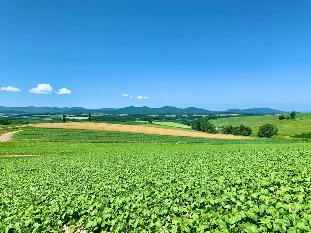 地図の中で、ケンとメリーの木と書かれているあたりかな。ジャガイモ畑と麦畑の組み合わせだろうか。きれいだよな。