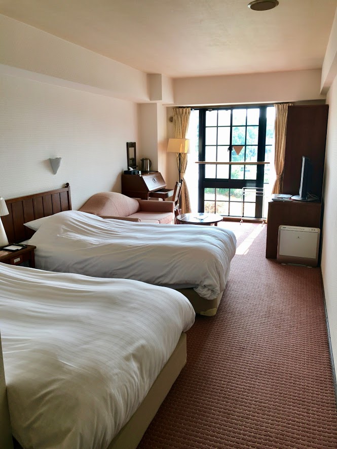 今日の宿の部屋。いい感じ。窓から遠くに英虞湾が見える。う〜む。ここで明日の昼まで。隠れ家にて、ゆっくりさしてもらうな。