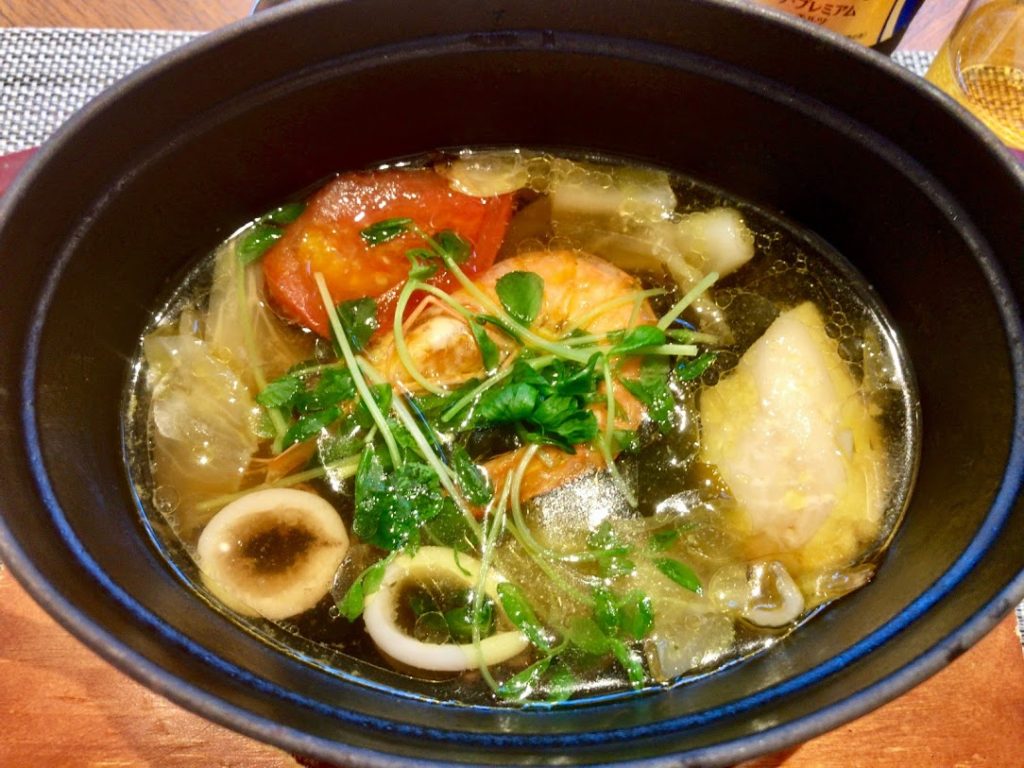 志摩魚介のアクアパッツァ。意外にも和風の味わい。なんとも旨し。どのように味付けを?とお尋ねしたら、すいませんがそれは料理長がどうしても教えてくれない。門外不出なんですと。そうなんだ。