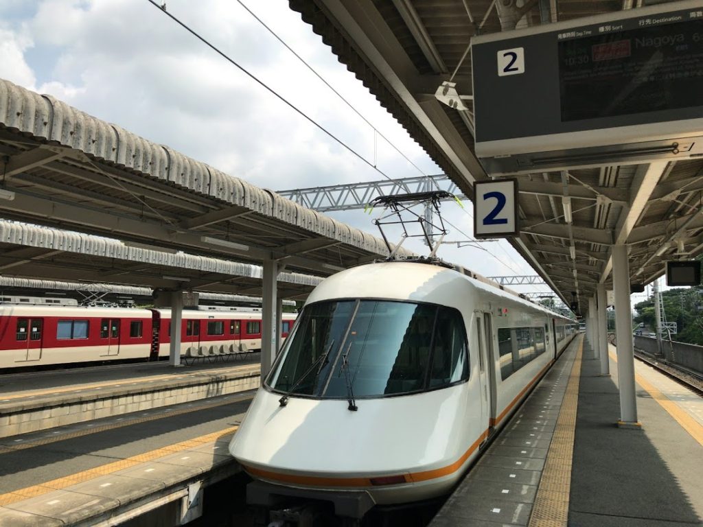 賢島発名古屋行き特急「アーバンライナー」。賢島駅には出発の30分前に入線していて、早いタイミングで車内に入ることができる。夏の暑い日は、こういうサービスが嬉しいよな。