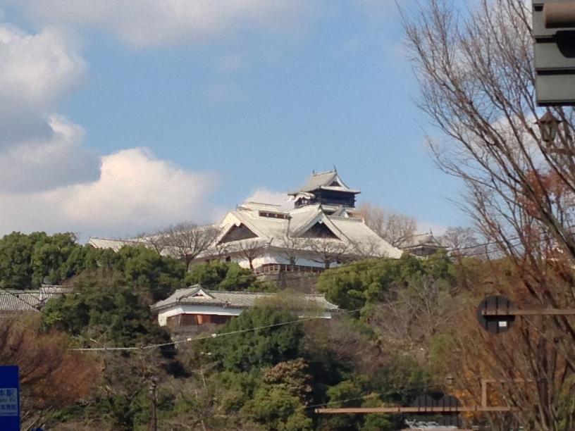 熊本空港から、町の中心の通町へ。天気がいいので熊本城が良く見えるな。よかよか。但し熊本での滞在時間は3時間と短かく、食事は用意されたお弁当だった。ここは少々残念だが・・