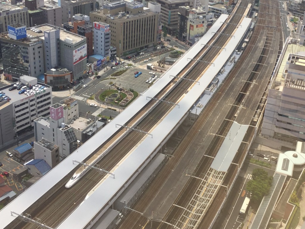 そのRelaxing roomからの真下の眺め。浜松駅が近くなので、電車の行き来が良く見える。走ってくる車両が、白いうなぎのようだ。ここからの眺めはテツにおススメ。ここにいると、東海道新幹線が如何に過密ダイヤなのか、よ~くわかる。ほんと電車、ひっきりなしに来てるからな。で新幹線が通ると、その音がなんともいい感じアクセントになってる。テツの音が遠くに聞こえるスパ、悪くないな。