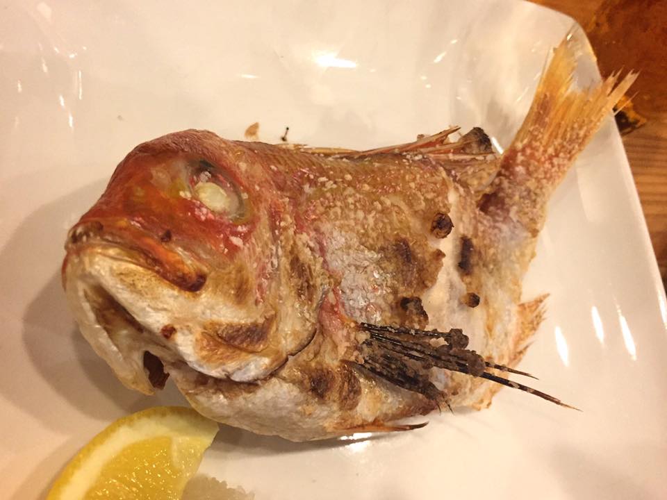 連子鯛の塩焼き。やはり地のものと。焼き上がりが香ばしくて、美味しだった。