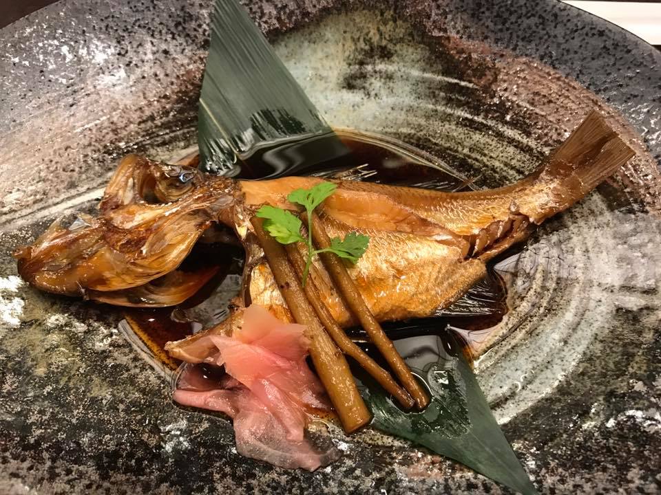続いては白むつの煮付け。のどぐろで有名な赤むつ、黒むつは聞いたことがあるが、白むつは初めて。三河湾で上がったらしい。う〜む。むつに共通する、上品な味わい。旨しな。