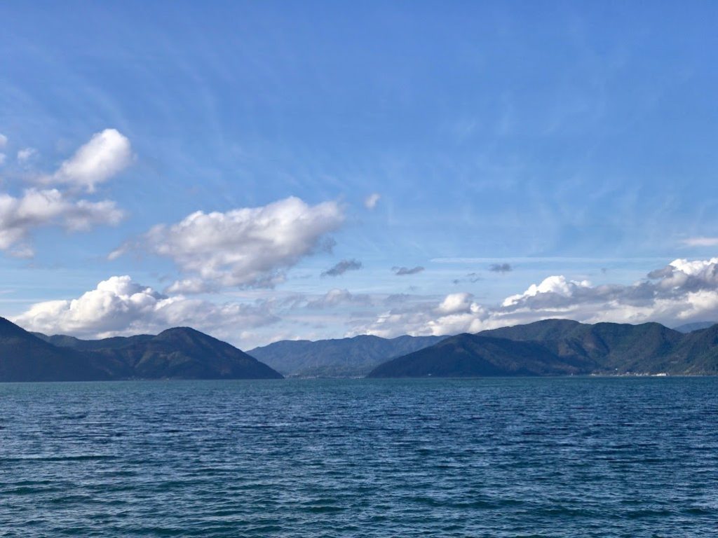 夕餉にはまだ時間があるので、あたりを散策。これは琵琶湖から北方向を望んだ景色。湖の向こうは、滋賀の近江塩津、もう少し先は福井の敦賀あたりが位置すると思う。綺麗だよな。