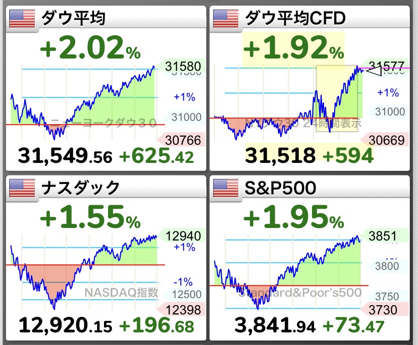さてさて、この日本株を受けての昨日のNYはこんな感じ。
