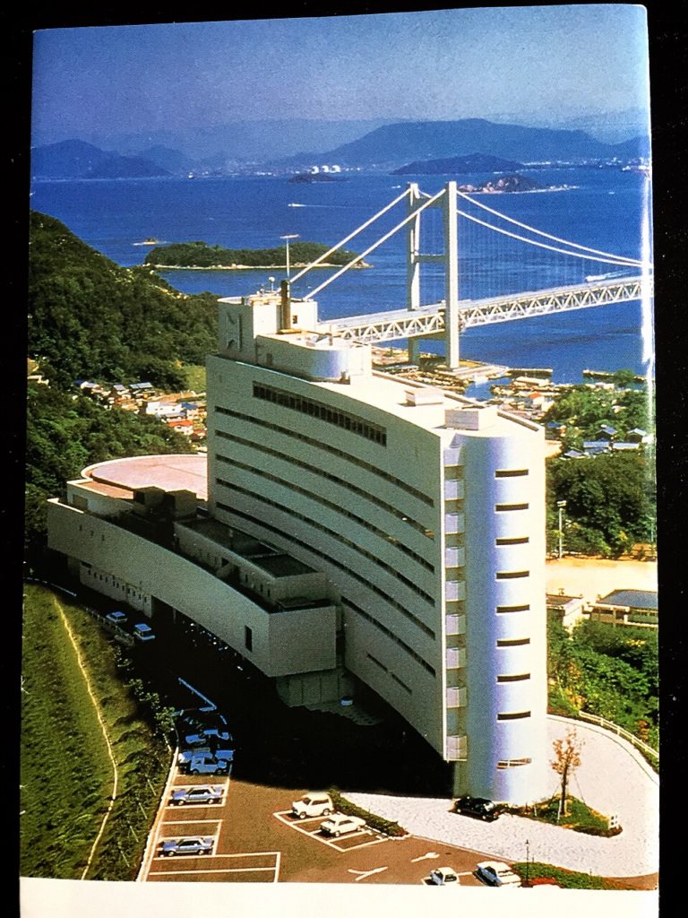 ホテルのパンフレット上の写真。海も空も綺麗。晴れていれば、瀬戸内海越しに四国、香川の坂出が見えるというが・・・