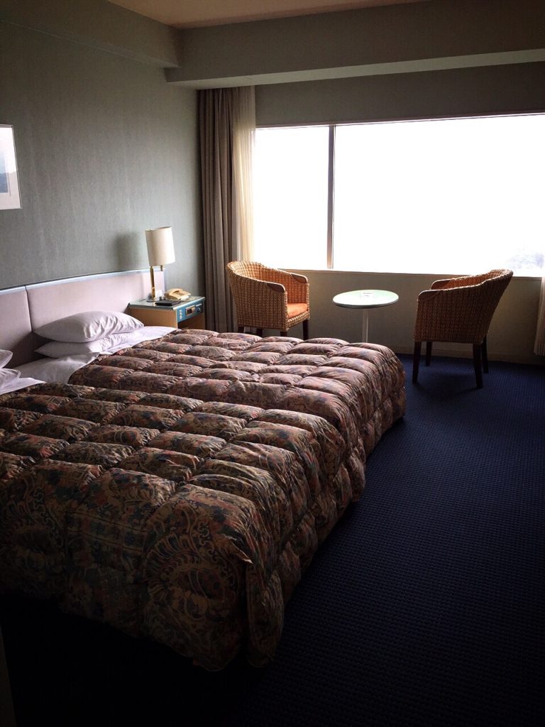 勉強会前に、早めにチェックイン。ホテルの部屋。やはり良いムード。再訪して良かったなと感じる瞬間、そんな気持ちになれるが・・・今日も天気は今一つ。眺望は明日に期待。天気予報は晴れということなので。