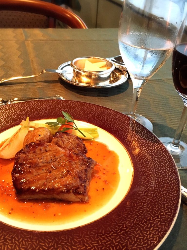 フレンチの夕食。コースのうち、前菜と鯛のポワレとステーキの写真を。このホテルの食事は美味い。前回は和食をいただいたけど、やっぱり素晴らしかったもんな。フレンチもやはり良かった。