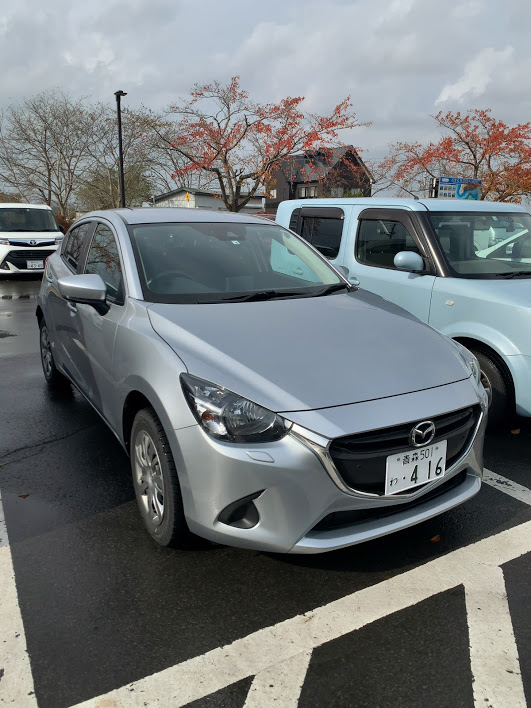 今回のレンタカーの相棒、マツダデミオ。だが、今回のデミオはいつもとは違う。4輪駆動でスタッドレスタイヤを装着。レンタカー会社の人曰く、冬の青森では、とてもではないがこの仕様でないと商売にならないと。今夜私が訪れる酸ヶ湯(すかゆ)は例年、12月以降は積雪が数日で5メートルにも達すると。そうなんだ。