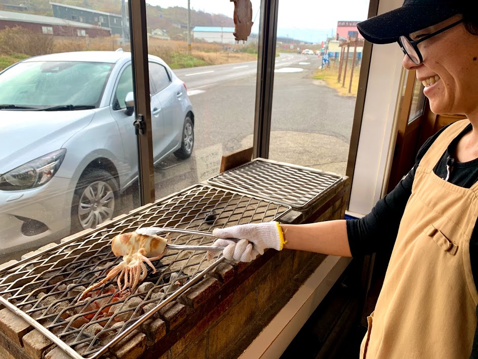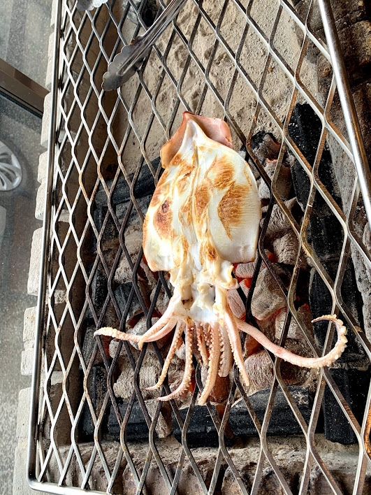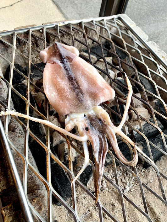 地元でとれたスルメイカ。これをその場で焼いてくれるらしい。一匹650円と。こうゆうのって好きだな。迷わず注文した。