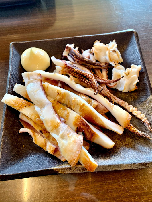 焼きスルメイカを、カットして出してくれた。とても美味し!マヨネーズが添えてあるが、これは必要なし。自然のイカの旨味とわずかな塩味で、もう十分に美味し。そしてとにかく柔らかい。ちょっと感動するほどだった。