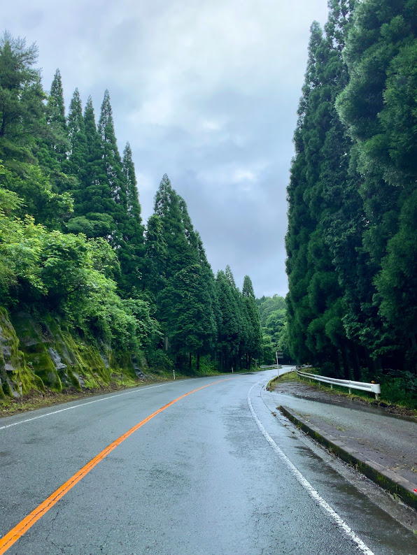 高千穂峡に向かう国道。大体がこんなムードの山間部だったな。