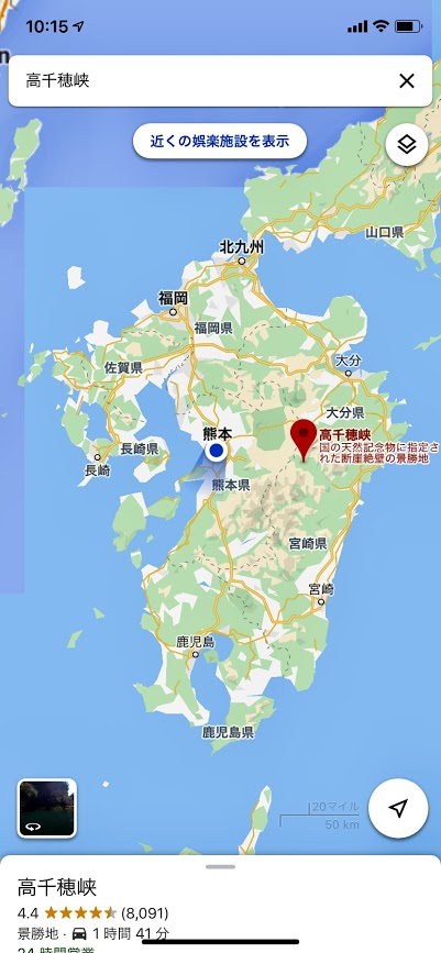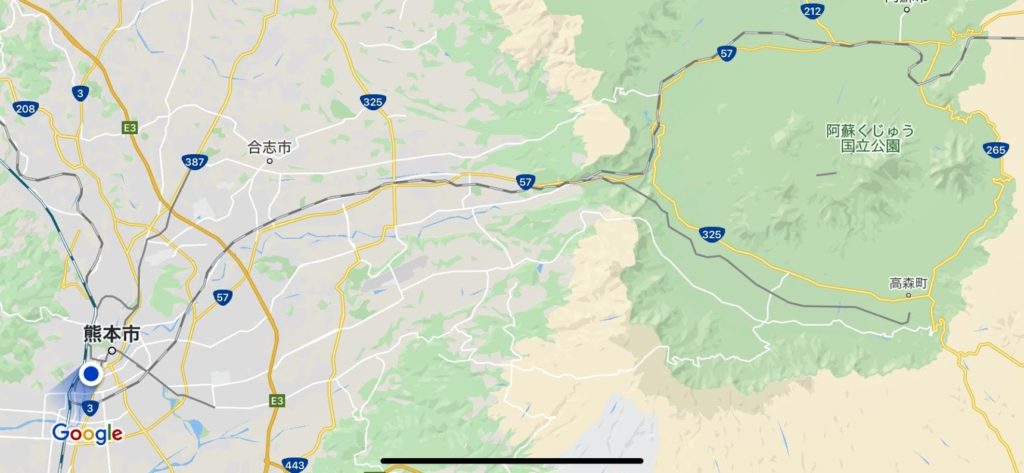 今日は熊本空港に10時前に着くので、そこから高千穂峡に行ってみようと思う。位置関係はこんな感じな。高千穂峡というと宮崎とか大分から行くのでは?と理解する向きが多いが。たしかにかつては高千穂鉄道が延岡から出ていたが、台風により高千穂鉄橋崩落に伴い2005年に廃線になった。これ以降実は、熊本空港から行くの近いんだよな。