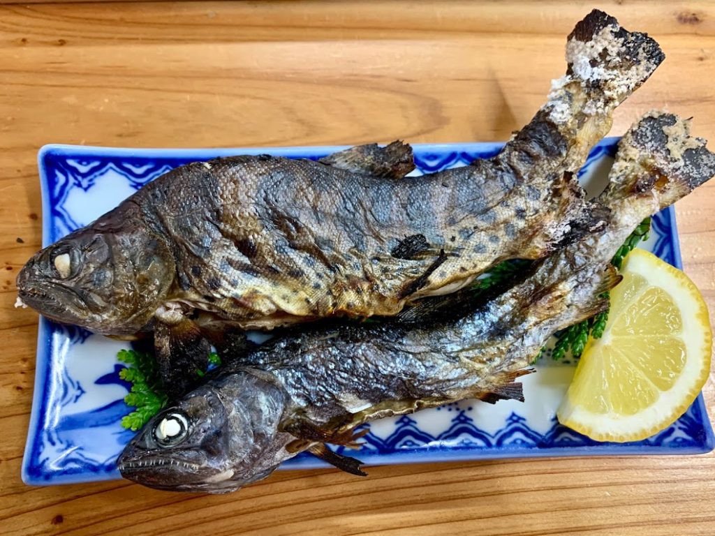 近くのお土産店的な食堂で、ヤマメの焼き物をいただく。この高千穂峡の川でとれた地物らしい。ご利益、あるのかな。