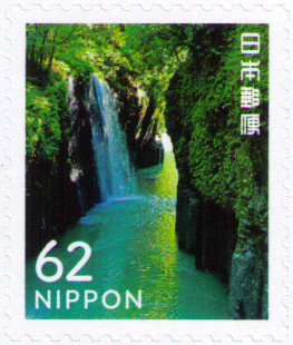 この切手に似せて撮ってみたのな。「My旅シリーズ第4集」(2018年9月5日発行)、祖母傾(そぼかたむき)国定公園、高千穂峡。