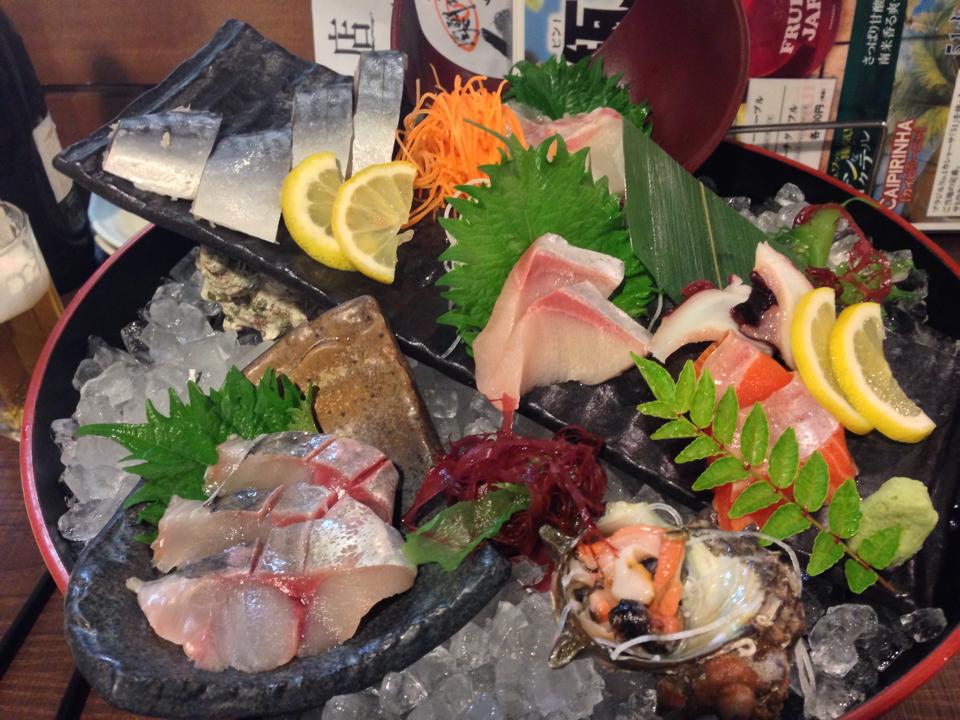 お造り8種、これで1000円と。安いよな…サザエ、メバル、つづり、鯛、タコ、しめ鯖、シマアジ、サーモン。どう見ても3人前以上の量がある。そしてどれも、旨い。さすがに日本海に近い山陰、浜田。恐るべしだよな・・・