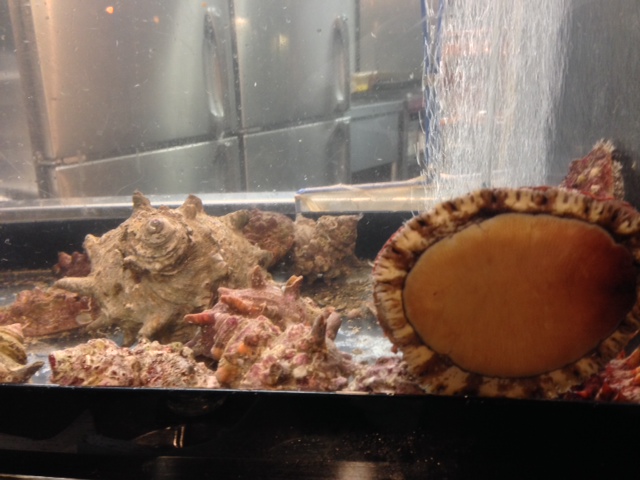 本来このお店は、名前の通り、炉端焼きの店。水槽にはサザエやアワビが。カウンターに座って飲んでいると、確かにサザエの壺焼きは、一定のペースで売れている様子。でも意外にみんな、海鮮を食べてはいない。なんでだろな。お造りは抜群に旨かったが…