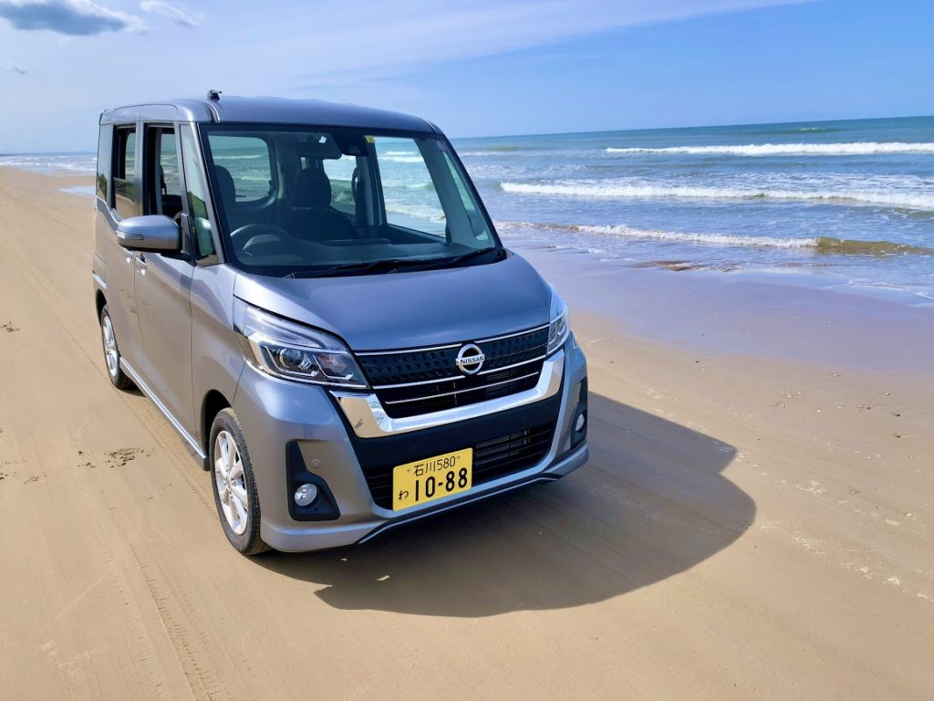 能登空港に到着。これからこのレンタカーに乗って金沢に向かう。おおよそ2時間位かな。この写真は翌日、千里浜(ちりはま)なぎさドライブウェイで撮ったもの。