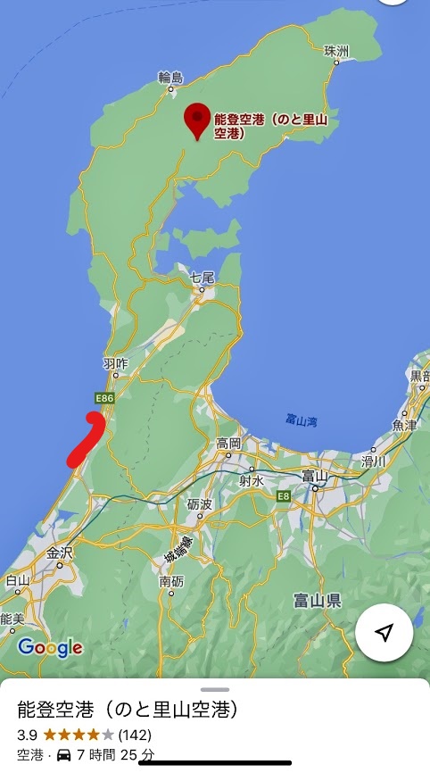 最後に・・・地図で示すと、赤線で塗ったあたりの砂浜が千里浜(ちりはま)なぎさドライブウェイ。楽しかったな。人生、悪くないって。久々にそう思いましたね。
