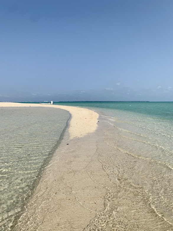 幻の島には一時間ぐらい滞在し、参加者は皆、きれいなベージュ色の島を愛で、遠浅で透明ともラグーン・ブルーともいえない海に浸かり、堪能してた。皆、あまりの美しさ楽しさに感動極まっていたな。そして舟を操る、ガイド役のあんちゃんが用意してくれていたカキンカキンに冷えたビール、最高だったな!