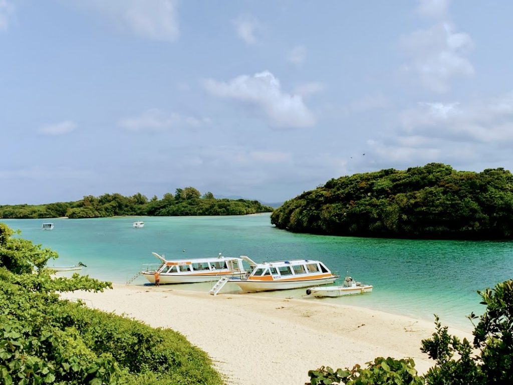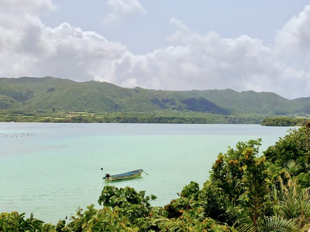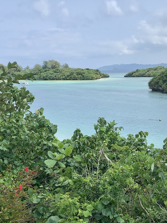 この地図を見ると。石垣島の道は海に沿って走っているので、さぞかしきれいの眺めが期待できるんだろうなぁと思っていたら。THIRD石垣の方曰く、「この道が意外と、海が見えないところも多いんですよね。石垣島で海を見るなら、川平湾(かびらわん)に行くのが1番おススメです。そこでぜひ、いろいろ楽しんでください」とのこと。そうなんだ。なるほどな・・・ということで行ってみたら、とても素敵な所でしたよ。写真を。
