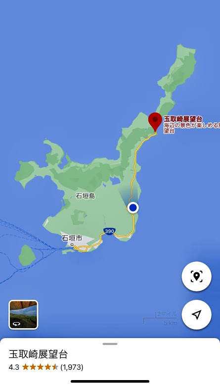 今日はレンタカーを借りて、石垣島の北部海沿いをぐるっとめぐって、石垣空港で車を返し羽田空港に戻ろうと思う。まずは下の地図をご覧いただきたい。