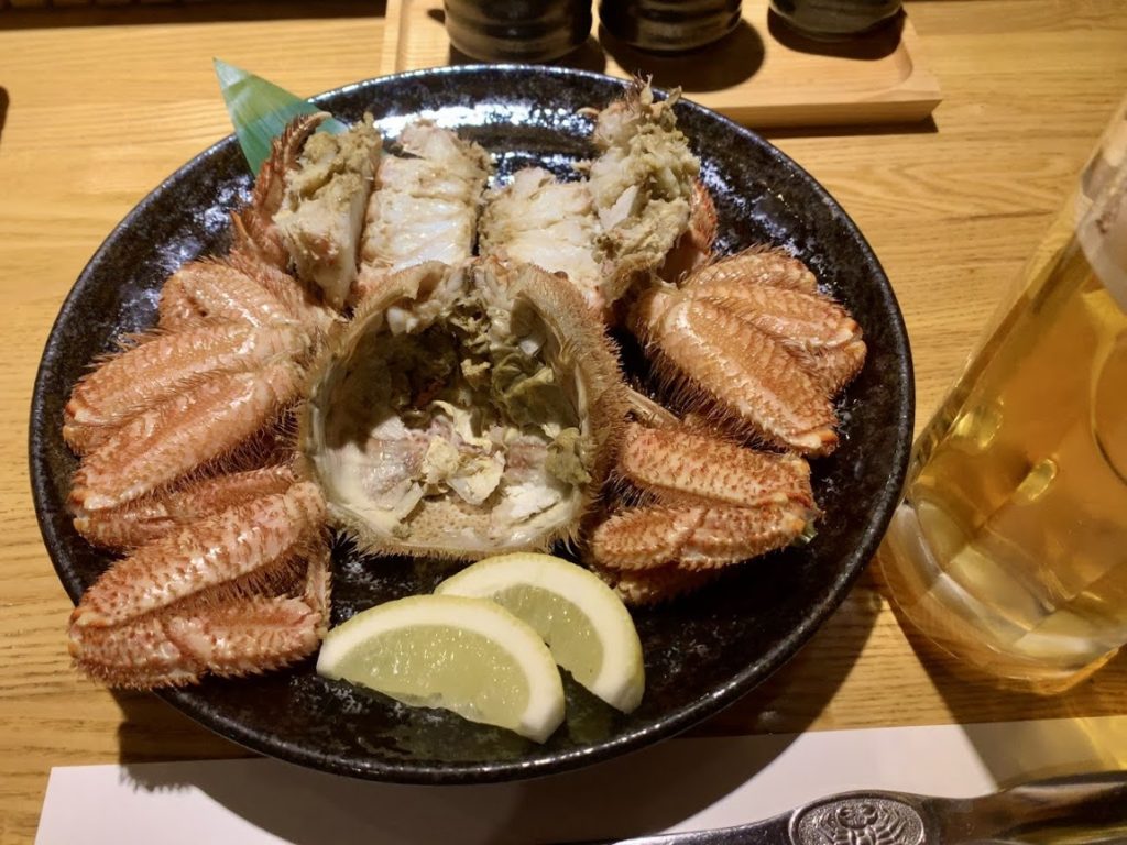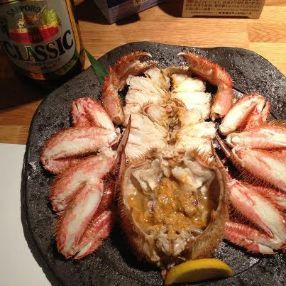 さばいてもらった。美味そうだが・・・確かにカニの肉はとても美味しだったが・・・カニ味噌が少な目かな。う~む。この地、北海道では、最高の旬の時期よりは少し遅かったか。この時期は、三陸あたりで食べるのが吉なのかな…ちなみに、ビールはサッポロClassicの生。北海道でビールと言えば、まずはこれだよな。