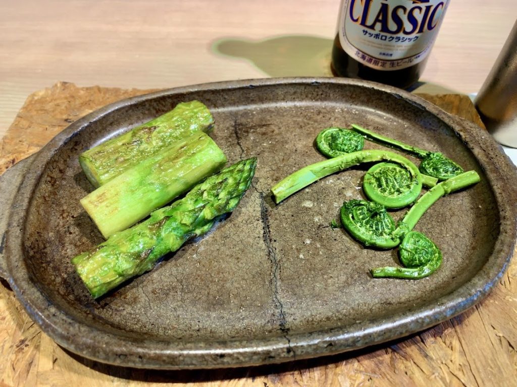 アスパラとこごみのバター炒め。ニセコの春をいただく感じ。いいな。美味しかった。
